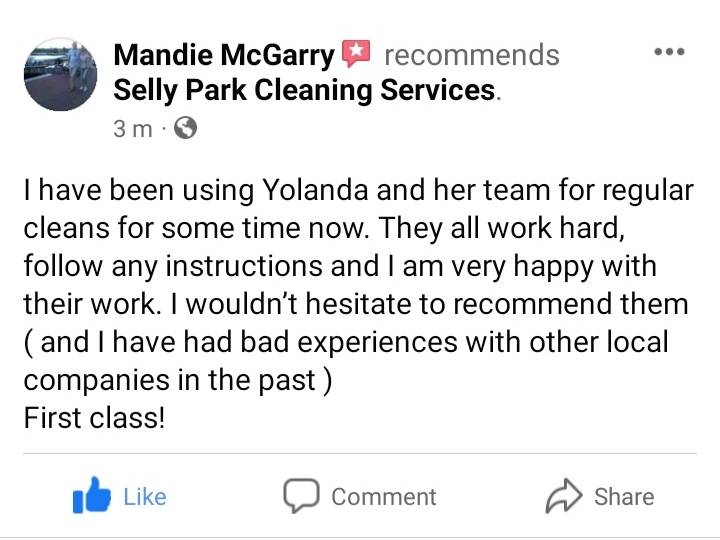 I'm a 34-year-old mother to 6-year-old boy, I have been cleaning since Nov 2021 and since then I have been growing my business. I have a few cleaner who work with me and we offer other services such as Carpet Deep Cleaning. Get in touch for a chat about how we can help you with your cleaning needs... www.sellyparkcleaningservices.com